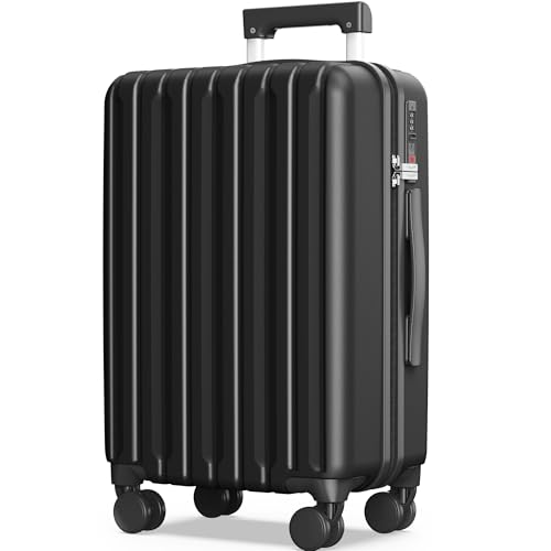 JLY 100% Polycarbonate Zipperless Luggage, Double TSA Locks Suitcase 20 inch Hardside 4 Spinner Wheels, Aluminium Alloy Handle, Flight Cabin Carry-on Travel Case. (Black)