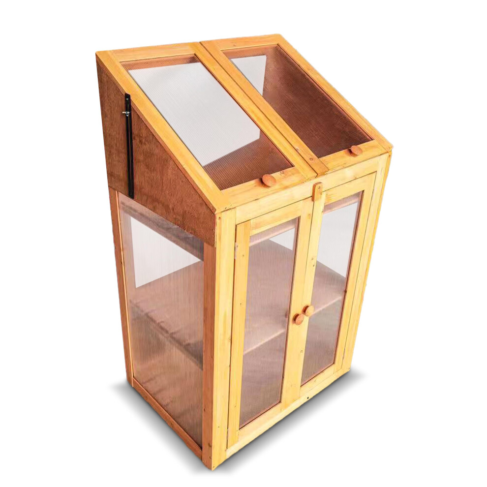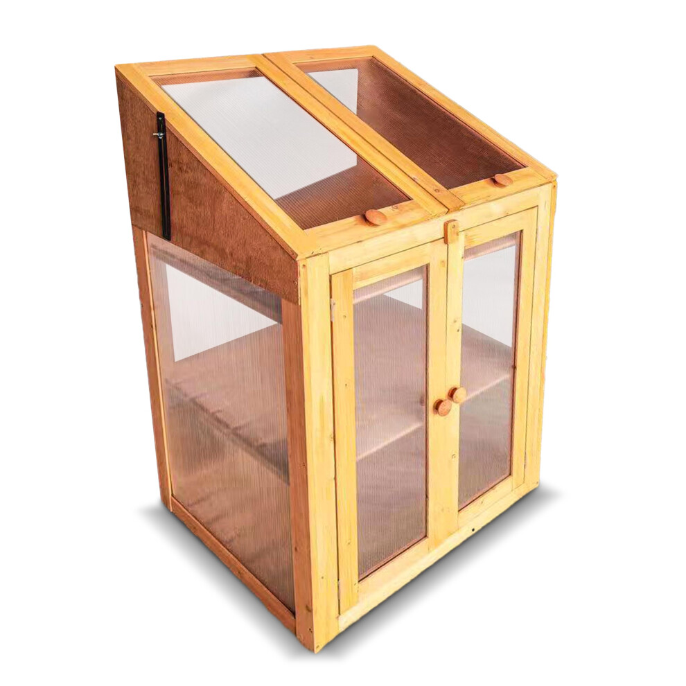 HMWD Mini Green House Wooden With Transparent Poly-carbonate Glazing, Small Wooden Greenhouse Cold Frame Greenhouse, Small Greenhouse For Small