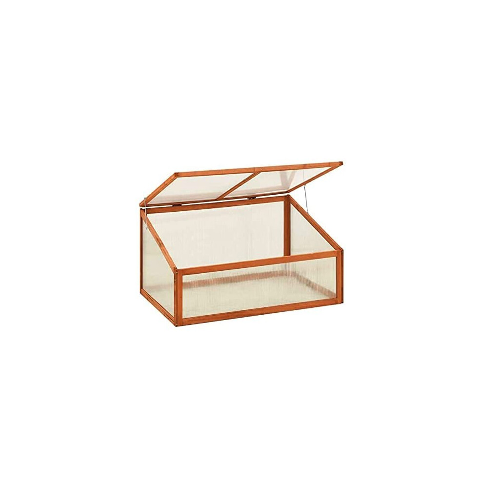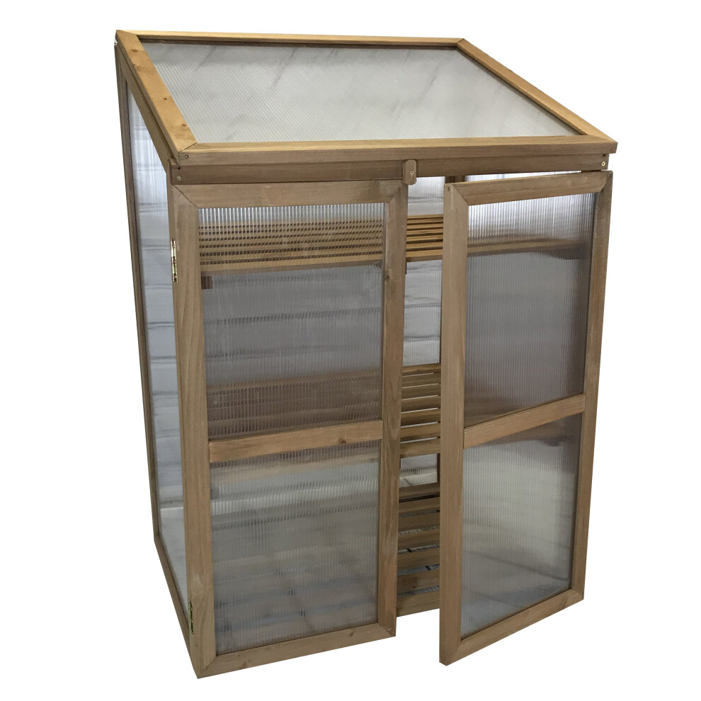 SASONS Quality Mini Wooden Greenhouse Wooden Cold Frame Plant Grow House Transparent Polycarbonate Panels Baby Plant Flower Vegetable Germinatio