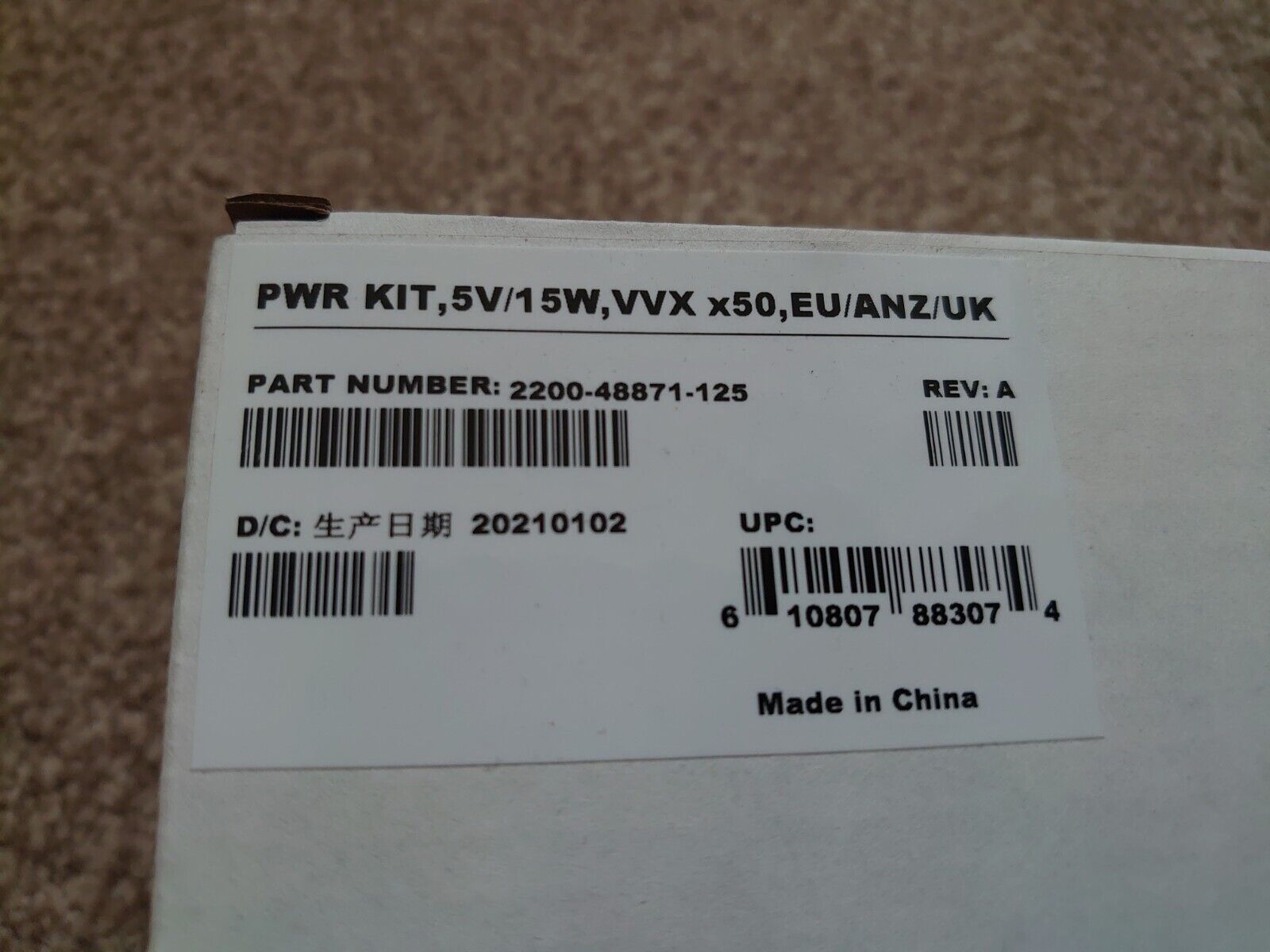 Polycom PSU for VVX 150/250/350/450 and CCX400 , 2200-48871-125 -3B REF 7