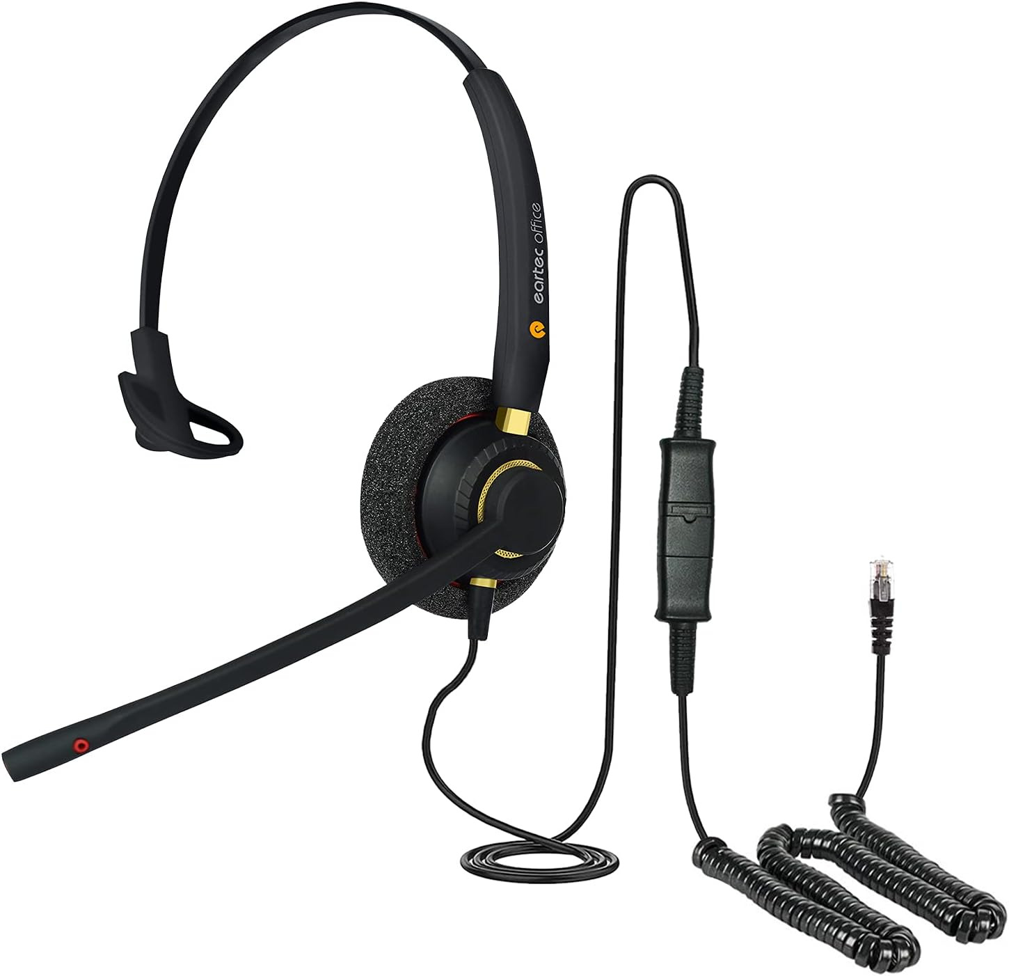 Wantek RJ9 Phone Headset with Noise Cancelling Mic + Quick Disconnect for Polycom VVX400 VVX410 VVX411 Mitel 5312 5320e Avaya 1120 1408 ShoreTel IP480 NEC Plantronics Landline Telephones(600QS2)