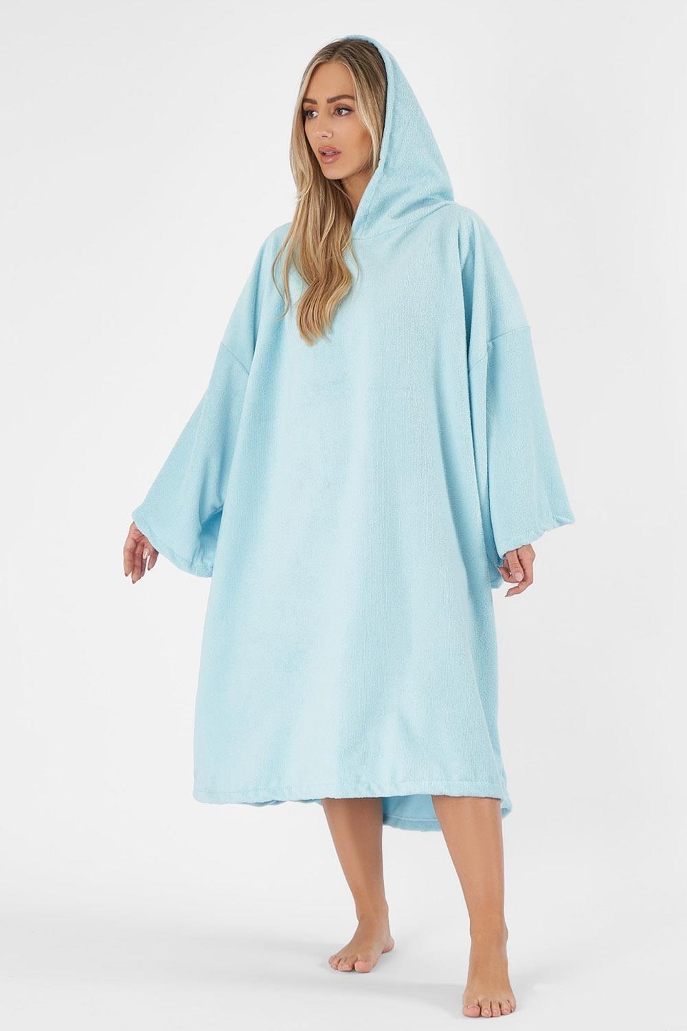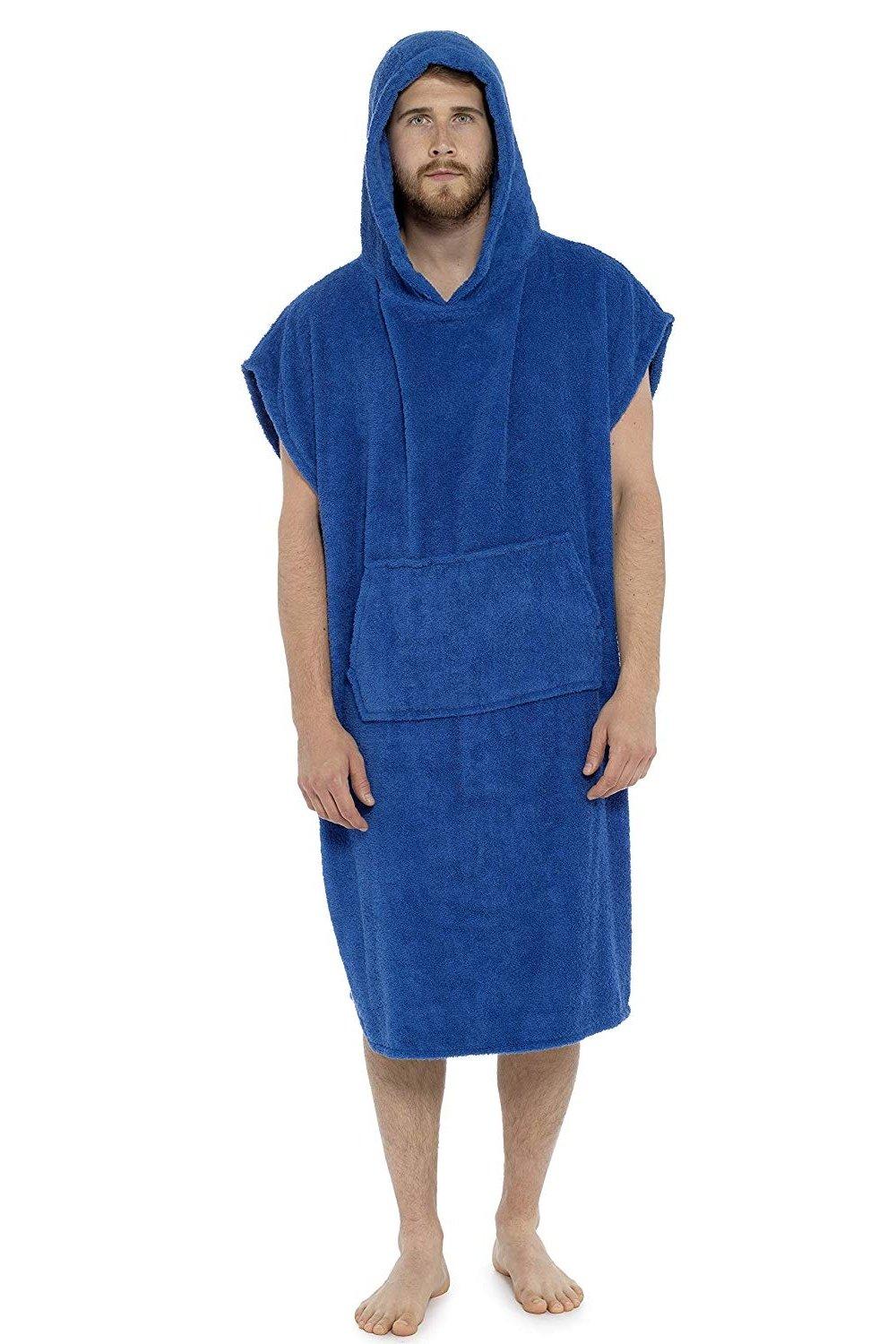 Changing Robe Towel Poncho with Hood for Surfing Swimming Wetsuit Changing,Compact & Light Weight,One Size Fit All Blue