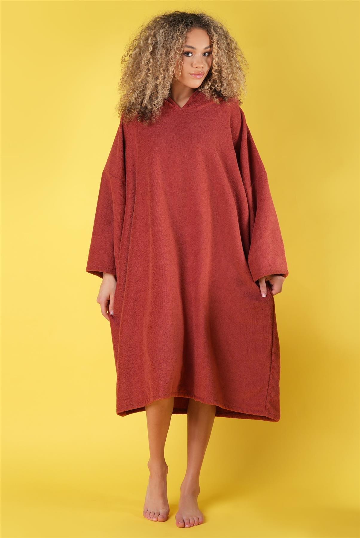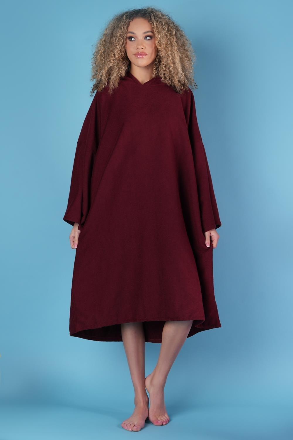 Red Original Unisex Adult Luxury Towelling Changing Robe, Surf Poncho Towel with Hood, Premium Cotton, Oversized, Super Absorbent ideal for Swimming, Surfing, Beach, Water Sports (Grey, M)
