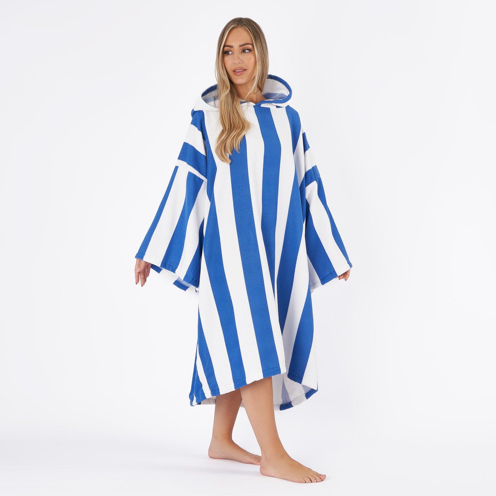 Stripe Poncho Towel Hooded Absorbent Bath Robe