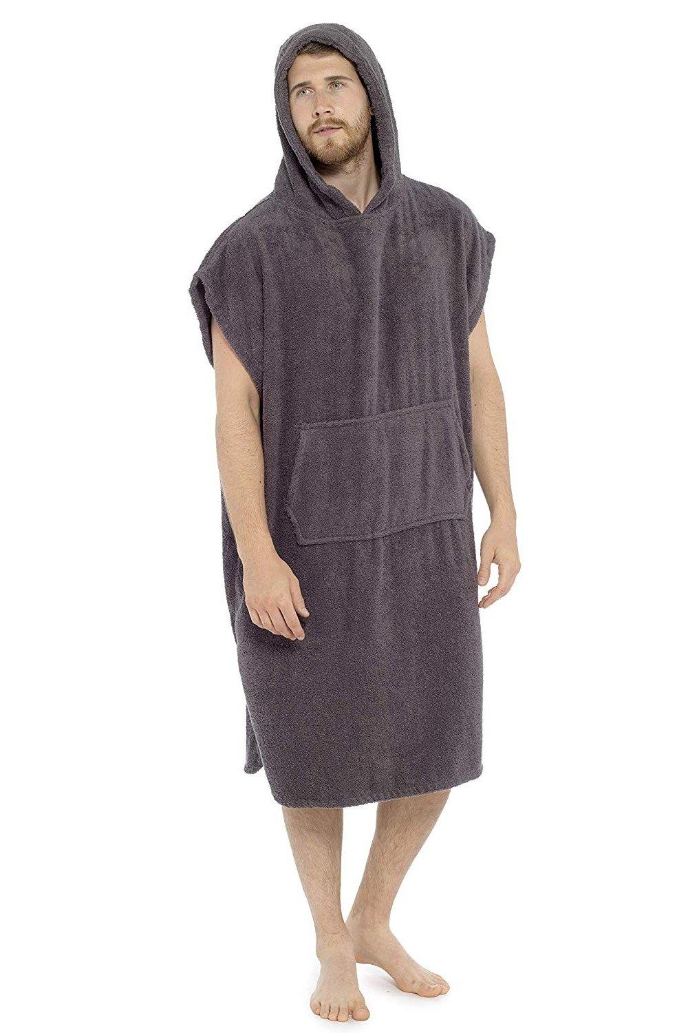 Changing Robe Towel Poncho with Hood for Surfing Swimming Wetsuit Changing,Compact & Light Weight,One Size Fit All Grey