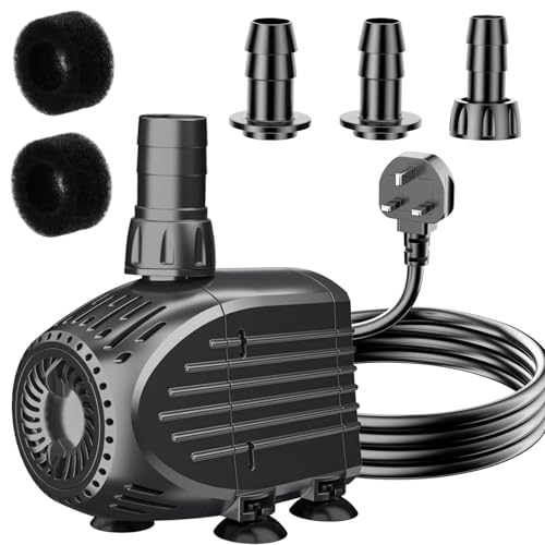Pond Pump 3500 L/H 80W Submersible Water Pump 3.5m High Lift for Pond Fountain Aquarium Waterfalls Garden, Adjustable Ultra Quiet Water Feature Pump with Filter and 2 Nozzles 19 mm/ 25 mm 1.8m Cable