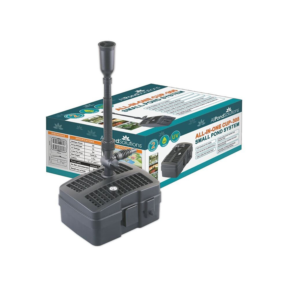 AllPondSolutions CUP-305-2000L/H All in One Pond Pump Filter with Fountain and 5w UV Steriliser, Clear Water Algae Control for Ponds up to 2000L