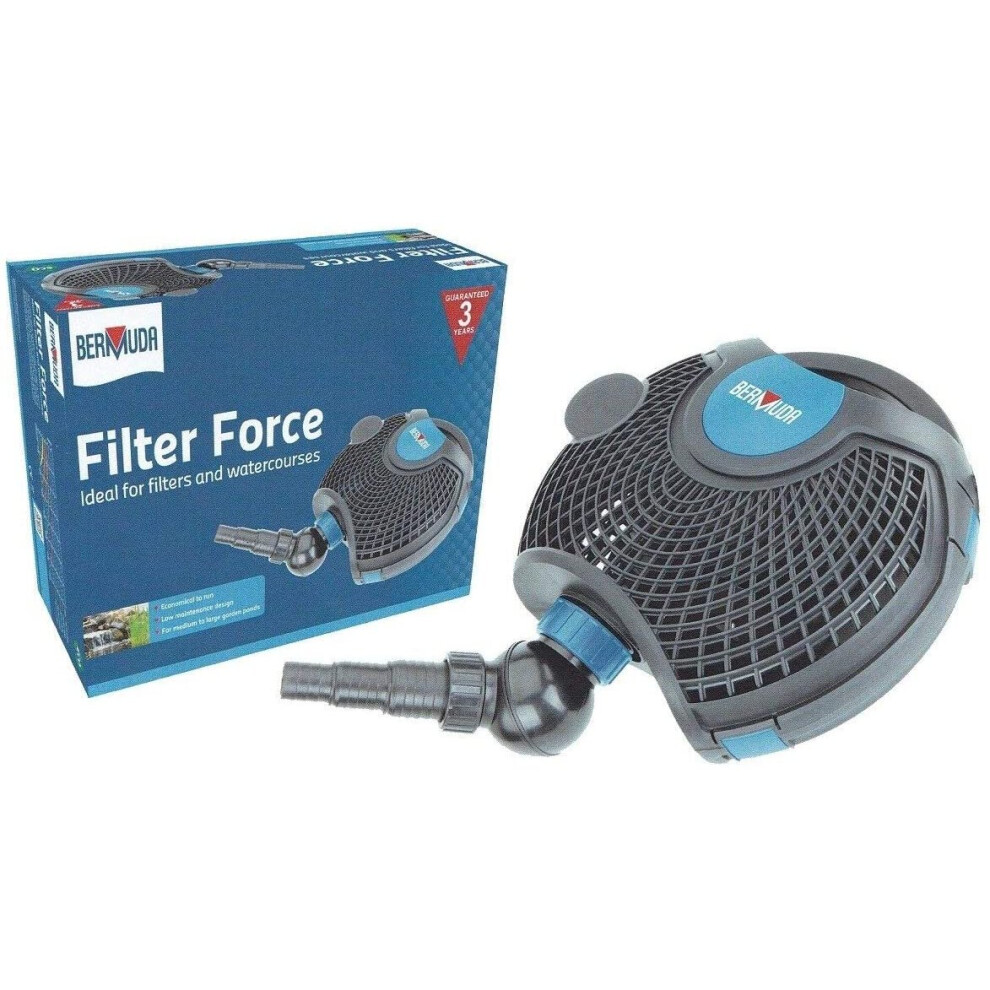 (1) Bermuda Filter Force Pond Pump Submersible for Large Medium Solids Handling Waterfall Watercourse Filtration Quiet Fish Koi Powerful