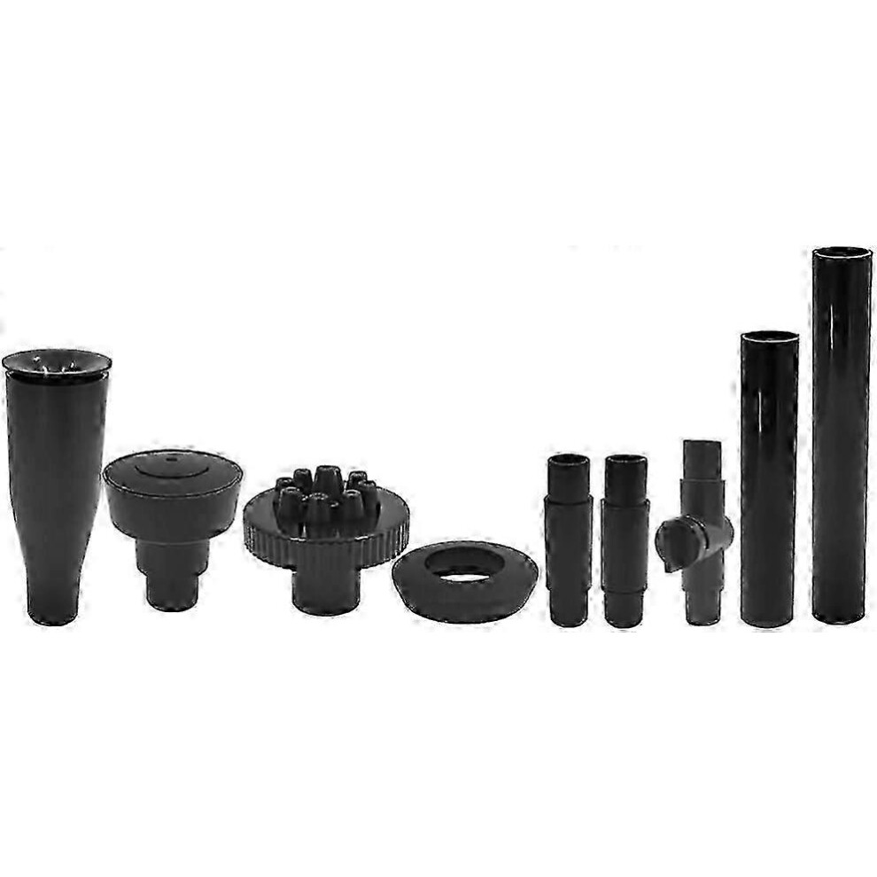9 Pcs Height Adjustable Fountain Pump Nozzles for Garden Submersible Pump, Waterfall Fountain, Pond Accessories, Black Edition
