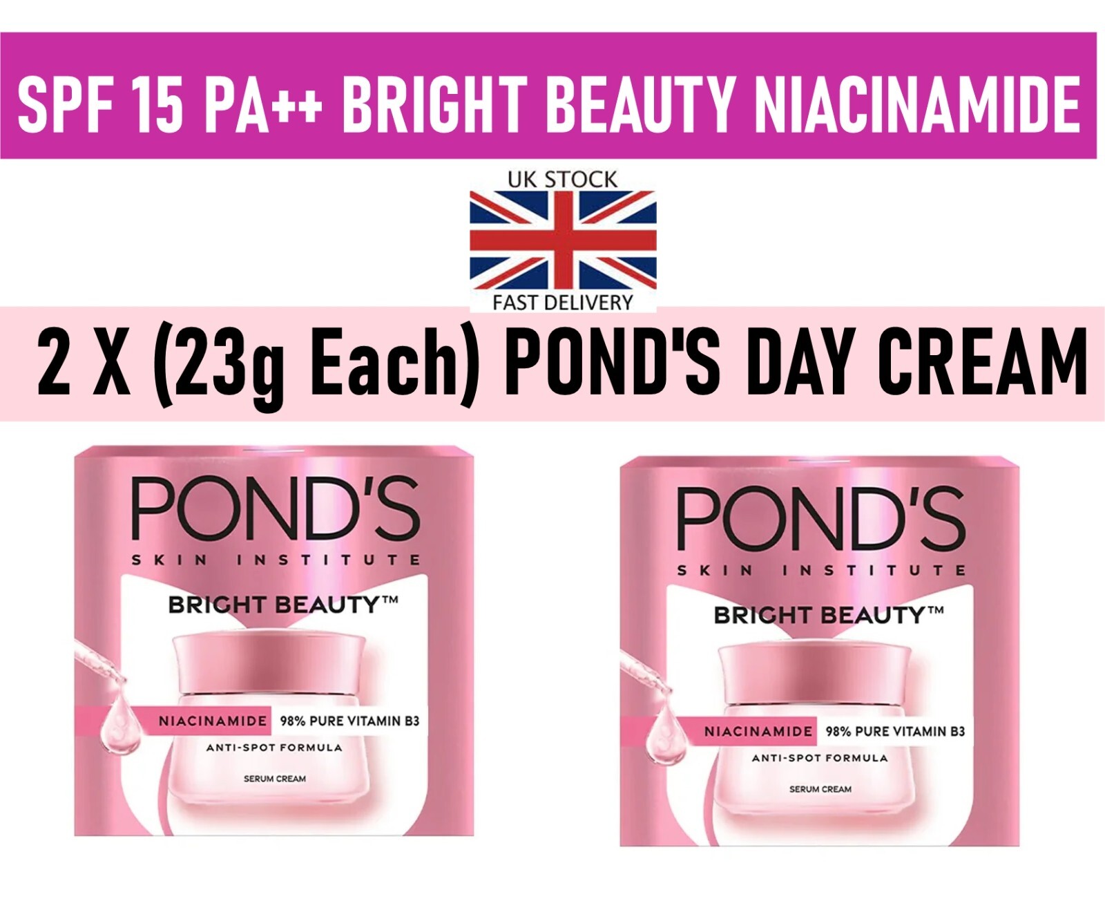 2 x 23G Ponds Bright Beauty Day Face cream SPF15 Vitamin B3 Lighten Dark Spots