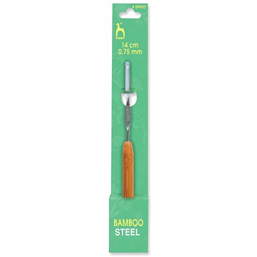 STL C/HK W/BAMB 0.75 - Crochet Hook: Steel with Bamboo Handle: 14cm x 0.75mm - Pony