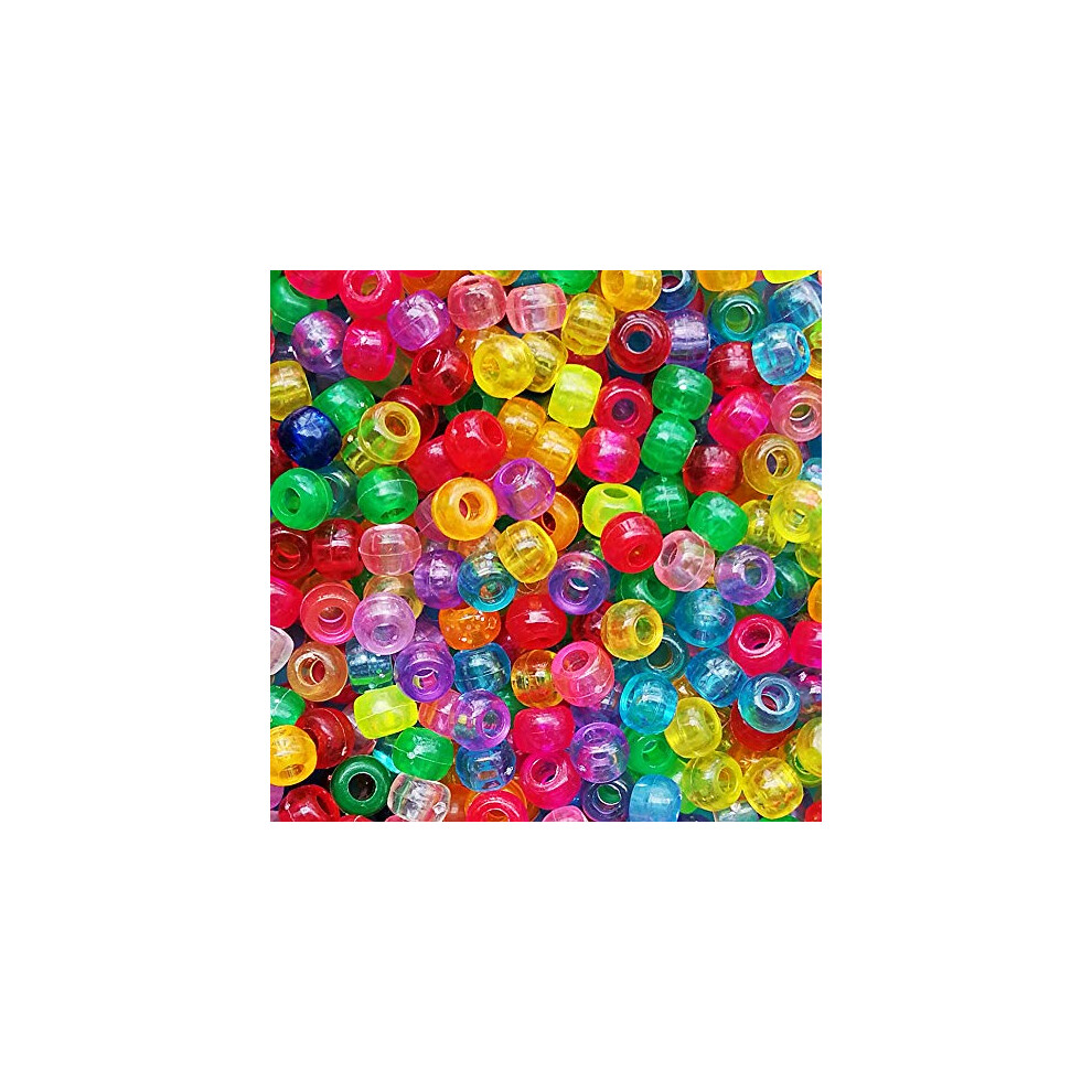 Transparent Multicolor Mix Plastic Pony Beads 6x9mm, 1000 Beads Bulk in Bag(Transparent)