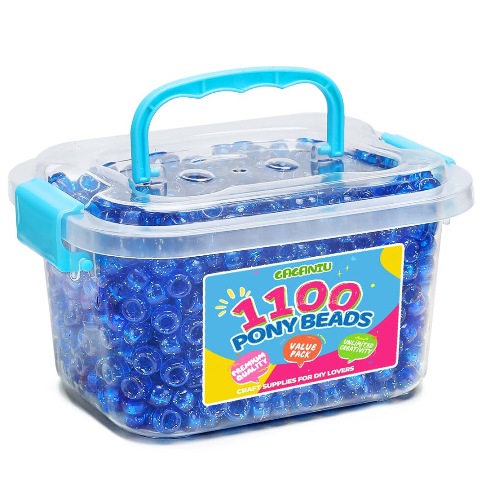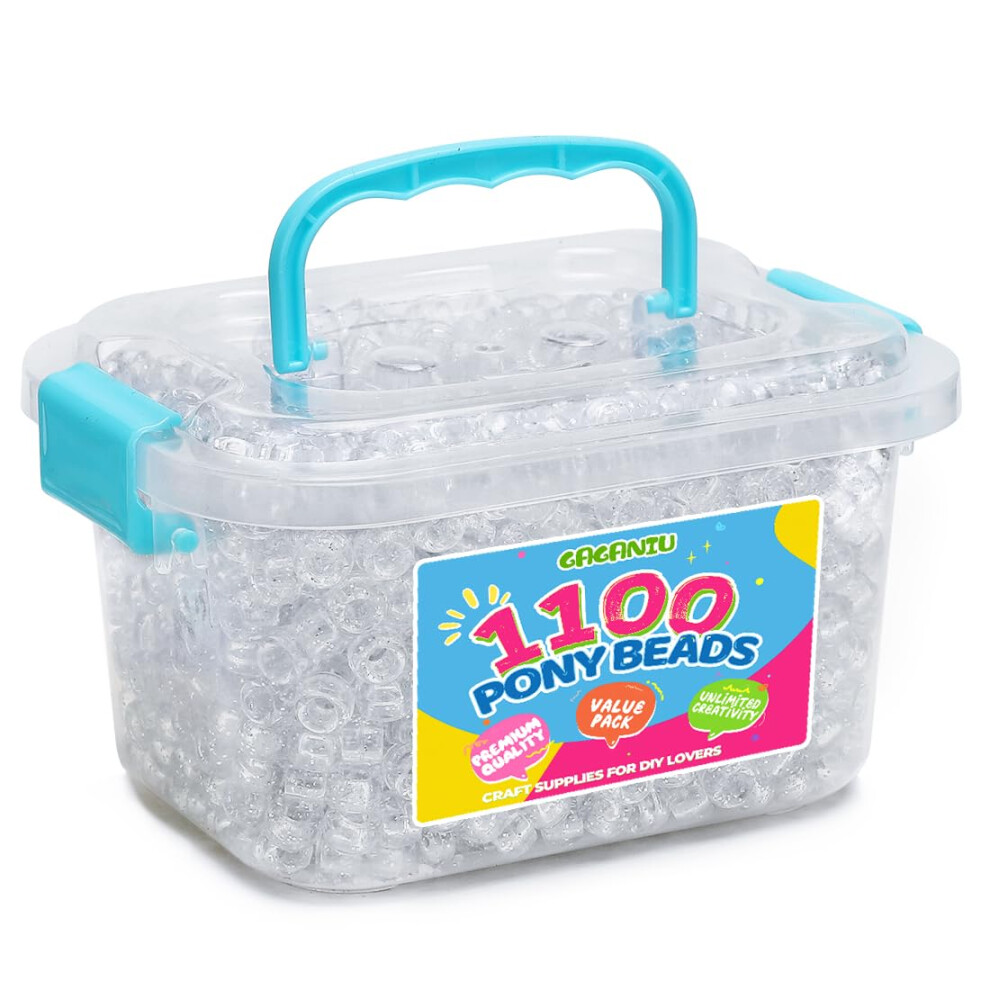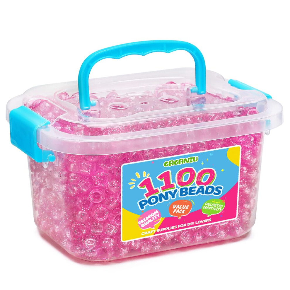 GAGANIU 1100+ pcs Pony Beads Glitter Beads Craft Beads for Jewelry Making in jar Beads Bracelet Beads for Hair Braids Plastic Pony Beads Bulk Ka