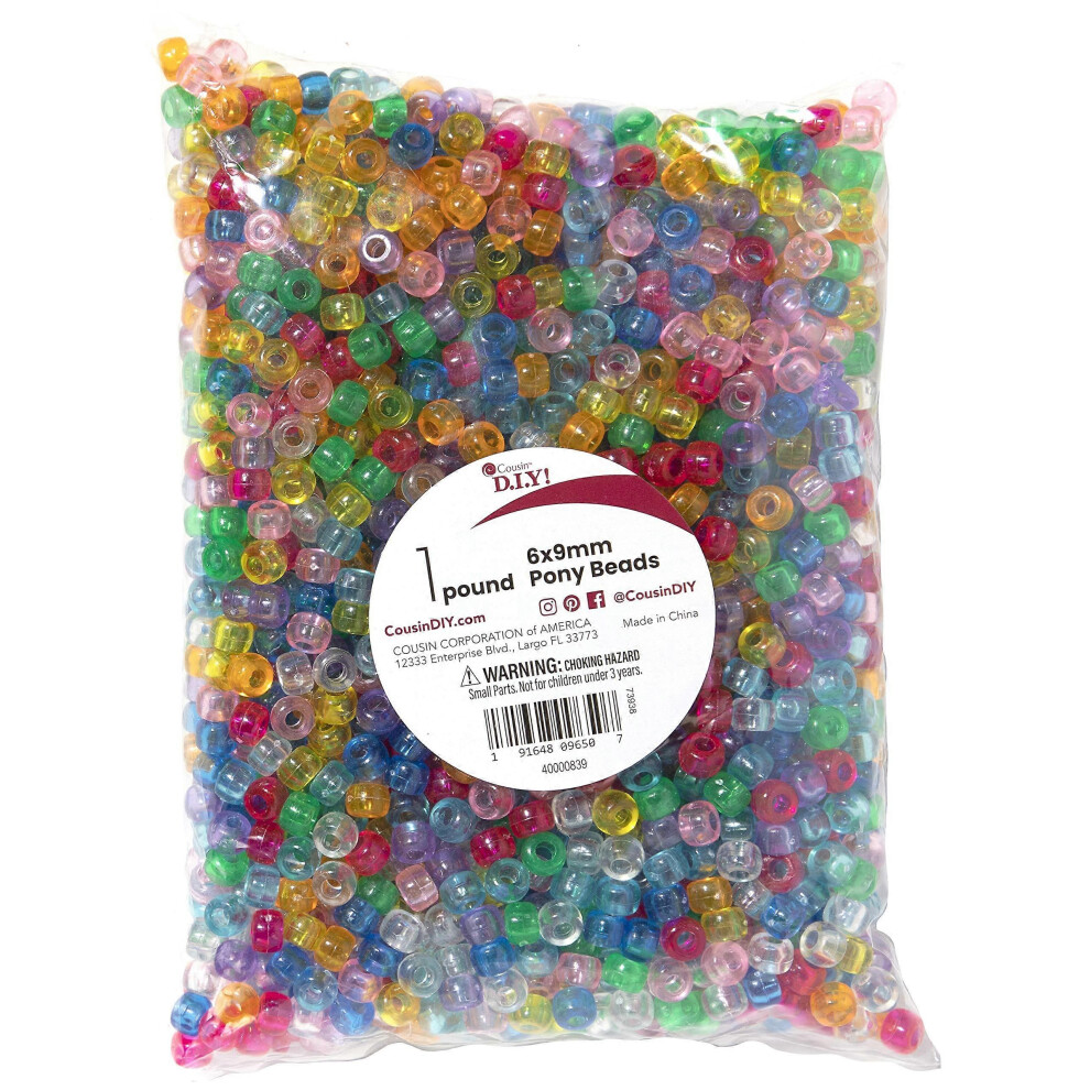 (As show, One size) DIY Multicolor Translucent Plastic Pony Bead Mix, 6x9mm, 1 lb