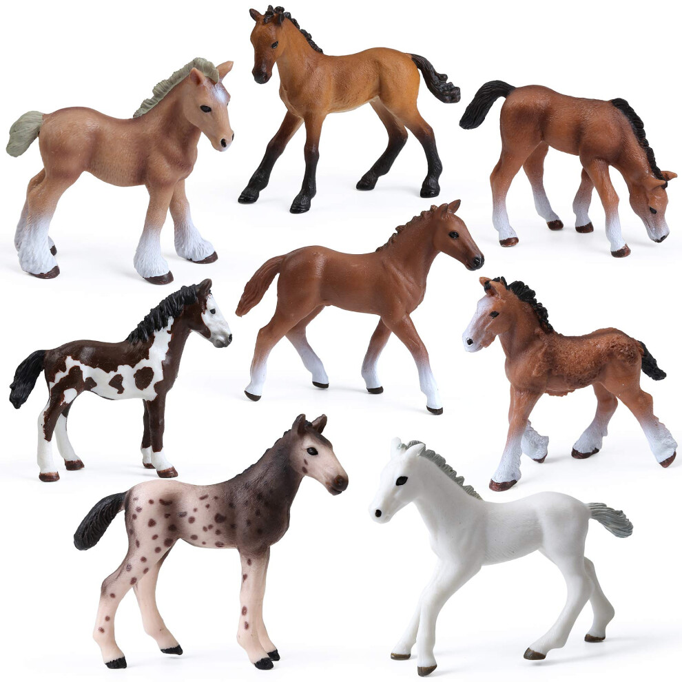 UANDME 8PCS Realistic Foal and Horse Figurines Plastic Pony Toys for Girls and Boys Horse Club Cake Topper and Party Decoration
