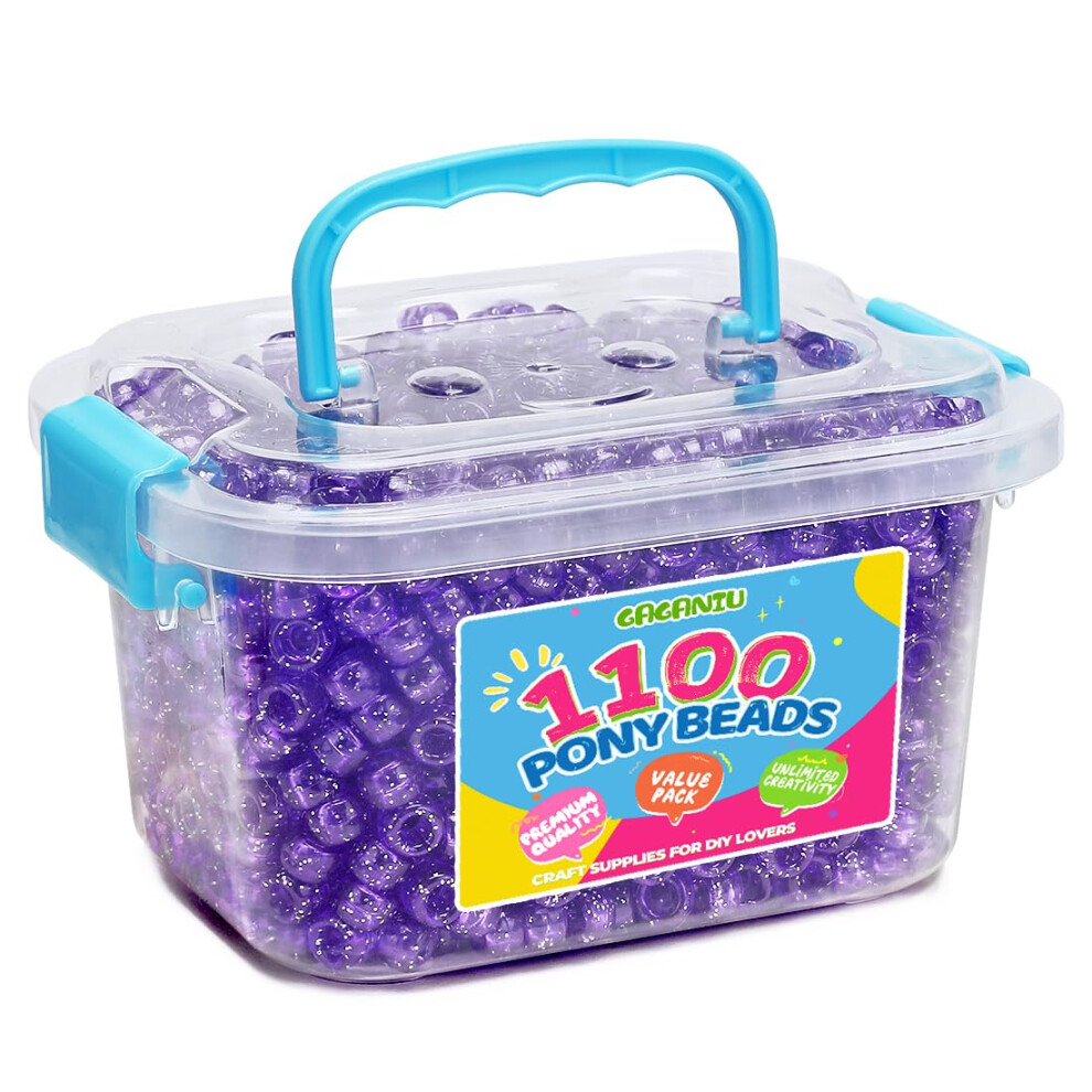 GAGANIU 1100+ pcs Pony Beads Craft Beads for Jewelry Making in jar Beads Bracelet Beads for Hair Braids Plastic Pony Beads Bulk Kandi Beads (Purpl