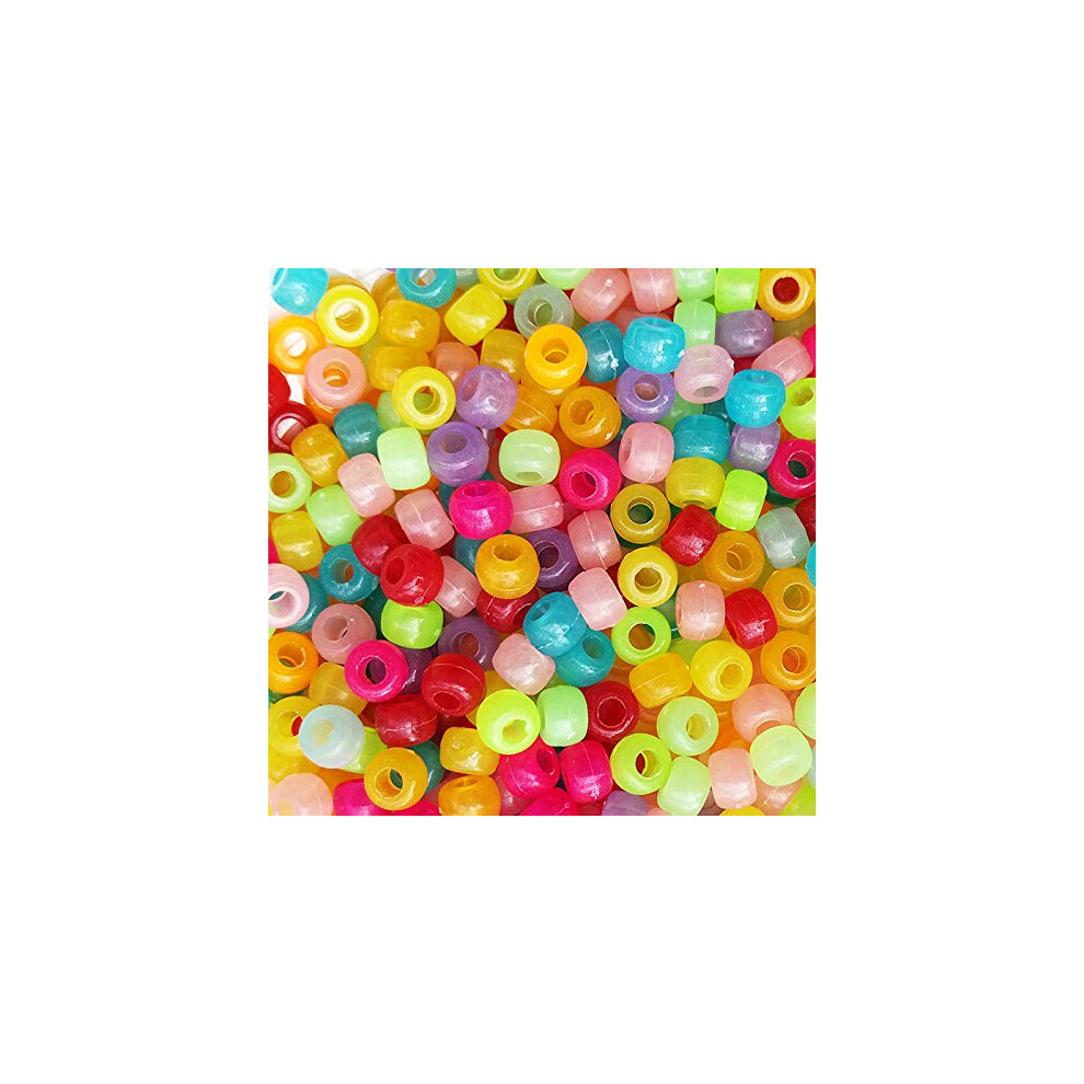 Glow in Dark Multicolor Mix Plastic Pony Beads 6x9mm 1000 Beads Bulk