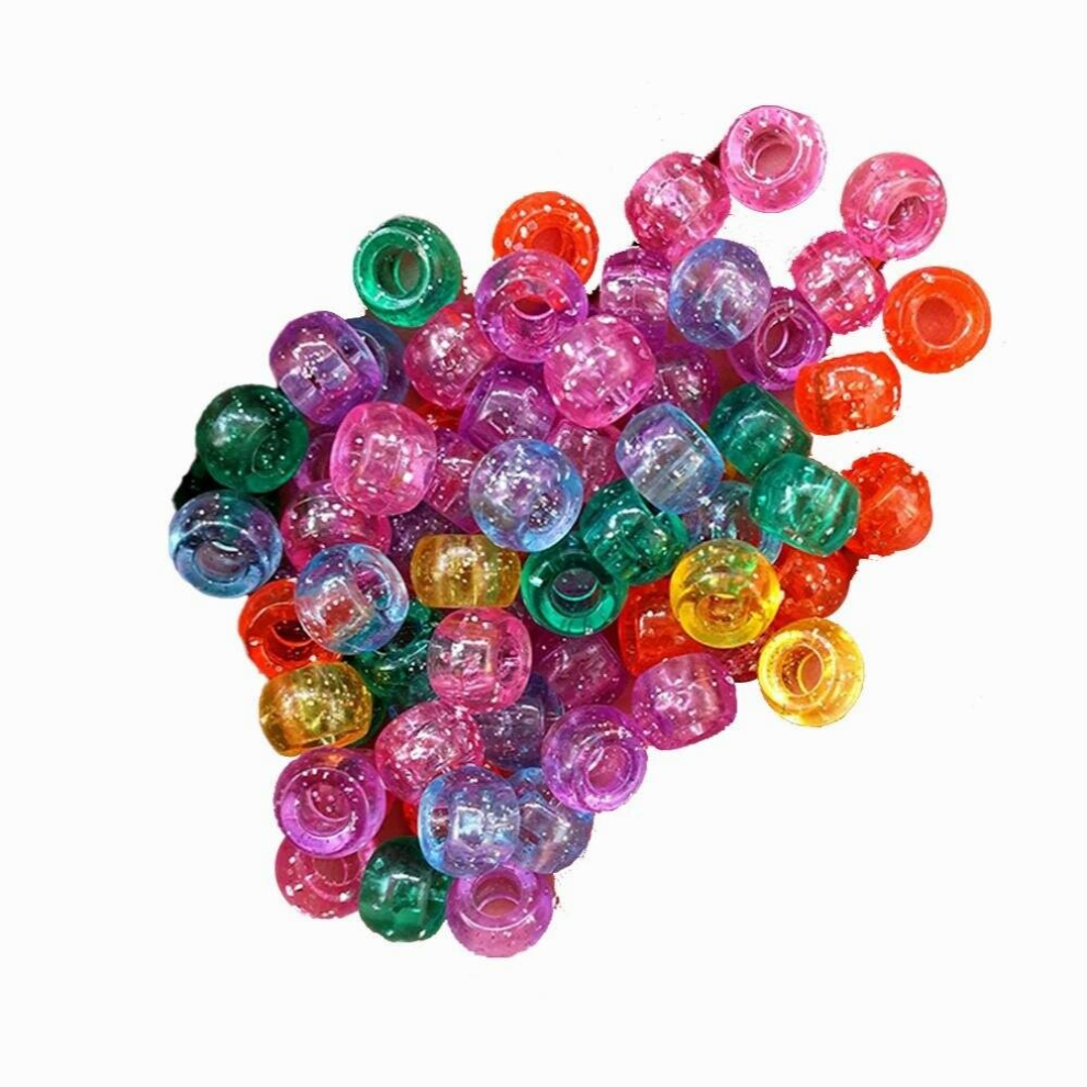 6x9mm Round Big Hole Transparent Glitter Plastic Pony Beads Spacer Loose Beads for Jewelry Making DIY Accessories