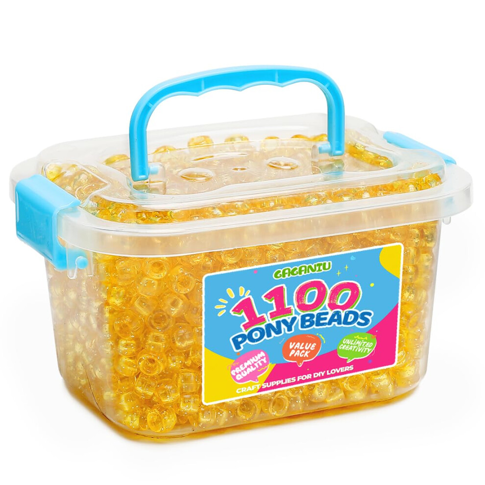 GAGANIU 1100+ pcs Pony Beads Craft Beads for Jewelry Making in jar Beads Bracelet Beads for Hair Braids Plastic Pony Beads Bulk Kandi Beads (Yello