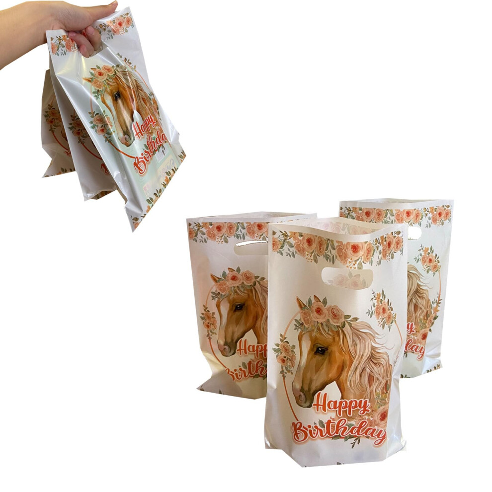 LYK 30PCS Horse Party Favor Bags Pony Themed Plastic Horse Treat goody Bags Horse and Pony Goodie Bags with Handles for Horse and Pony Themed Party S