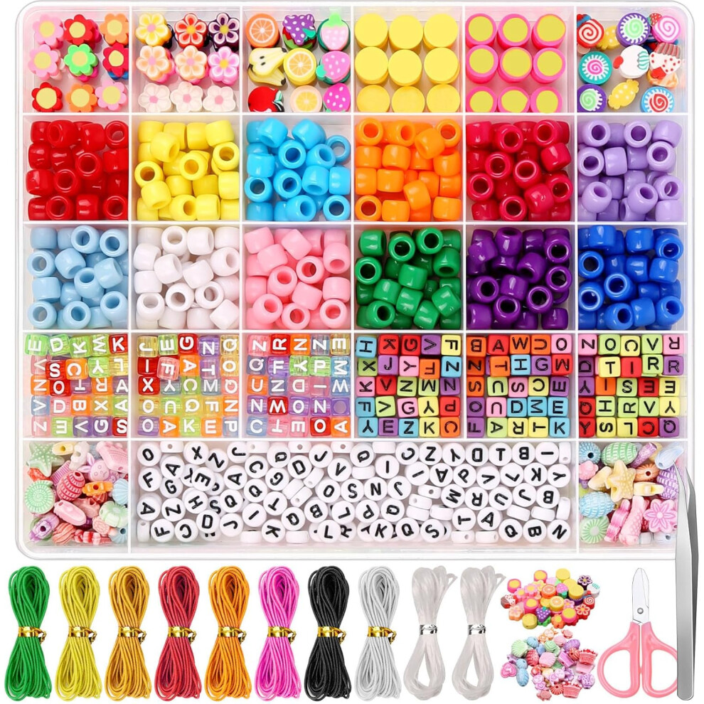 Pony Beads for Bracelets Making, 24 Colors Plastic Pony Beads Bracelet Beads for Hair Braids and Jewelry Bracelets Making