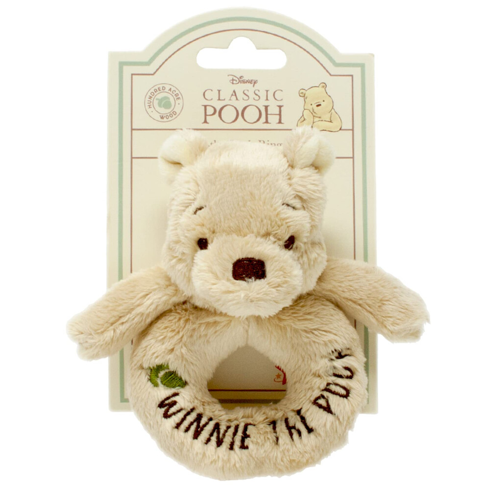 Official Disney Winnie The Pooh Rattle - Soft Pooh Bear Baby Toy by Rainbow Designs