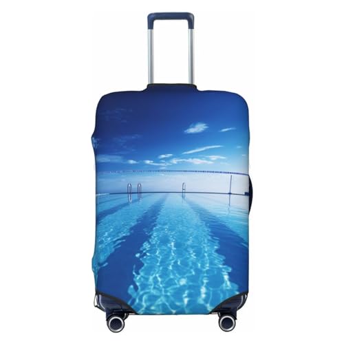 DWVTSLH Blue Swimming Pool Luggage Covers for Suitcase Tsa Approved, Spandex Elastic Suitcase Cover Protector Washable Anti-Scratch Travel Baggage Cover Fit 18-32 Inch Luggage, Black, L