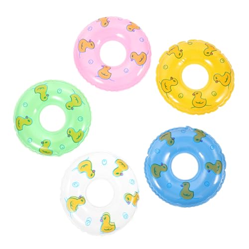 VICASKY 5pcs Mini Swim Ring Ornaments Adult Swim Ring Duck Mini Doll Floaties Pool Decoration