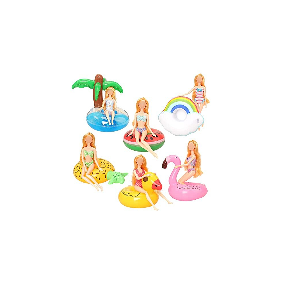 Pool Floaties for Girl Dolls, Fun Swimming Pool Party Ring Inflatable Drink Holder for 11.5 inch Dolls Pool Toys