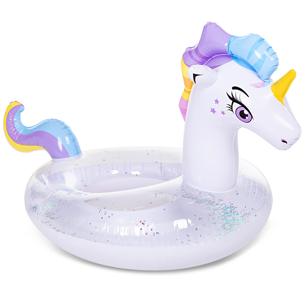 JOYIN Pool Inflatables Unicorn Pool Float Swim Ring with Glitters, Tubes Floating, Fun Beach Floaties, Pool Toys, Party in Summer Decorations for Kids (129x85x82 cm)