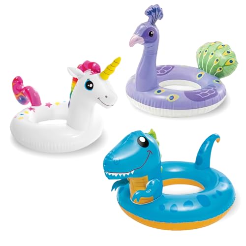 Unicorn Peacock Dinosaur Inflatables Swimming Ring Rubber Rings for,3pcs Inflatable Swim Rings Pool Float Tube,Inflatable Pool Ring Toy Floaties for Beach Summer Party Water Sport