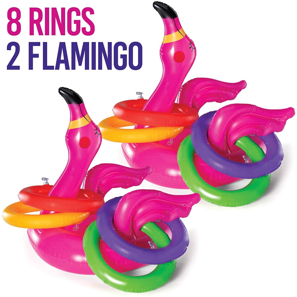 Top Race Flamingo Ring Toss Game For Kids & Adults - Outdoor Inflatable Pool Toy - 2 Piece Floating Pool Game For Swimming Pool Beach Carnival Games