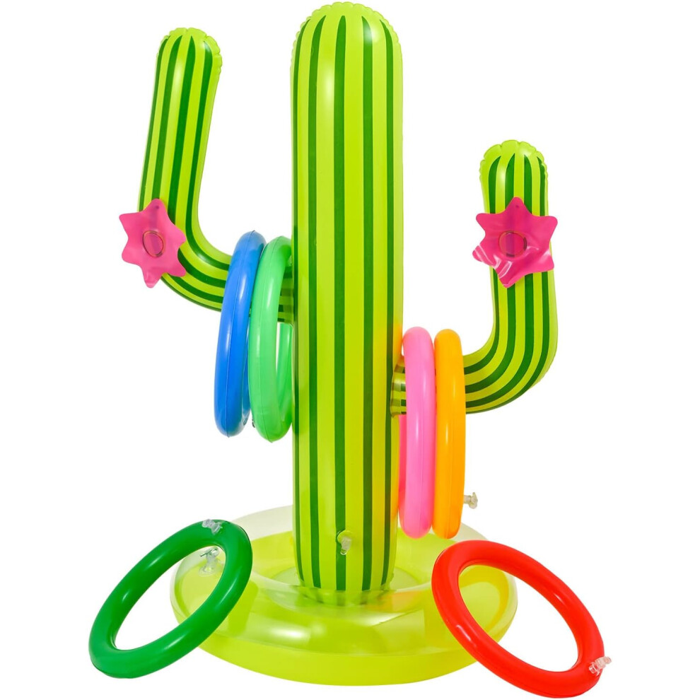 Mexican Fiesta Party Accessories, Floating Swimming Summer Game Inflatable Cactus Ring Toss Game for Pool Game Toys, Hawaiian Pool Beach Party Decorat