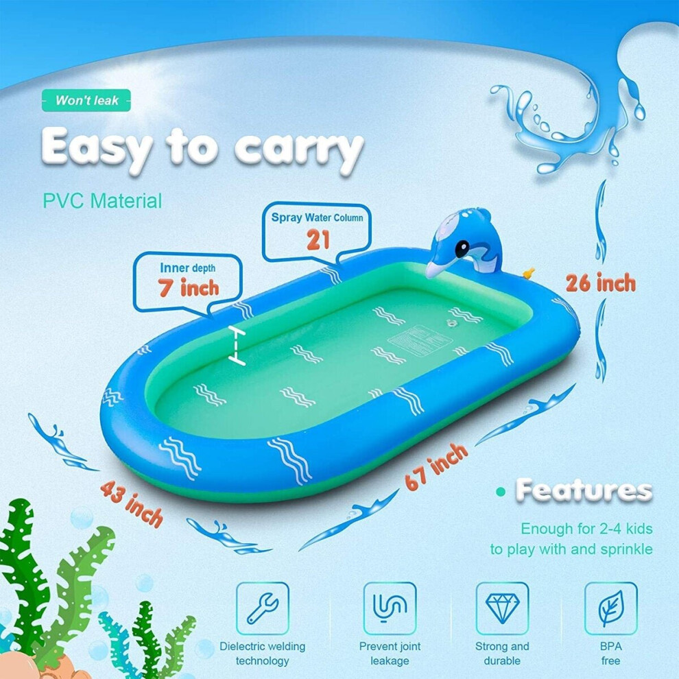 (110*70cm) Dolphin Inflatable Water Jet Game Pool Lawn Game Pool