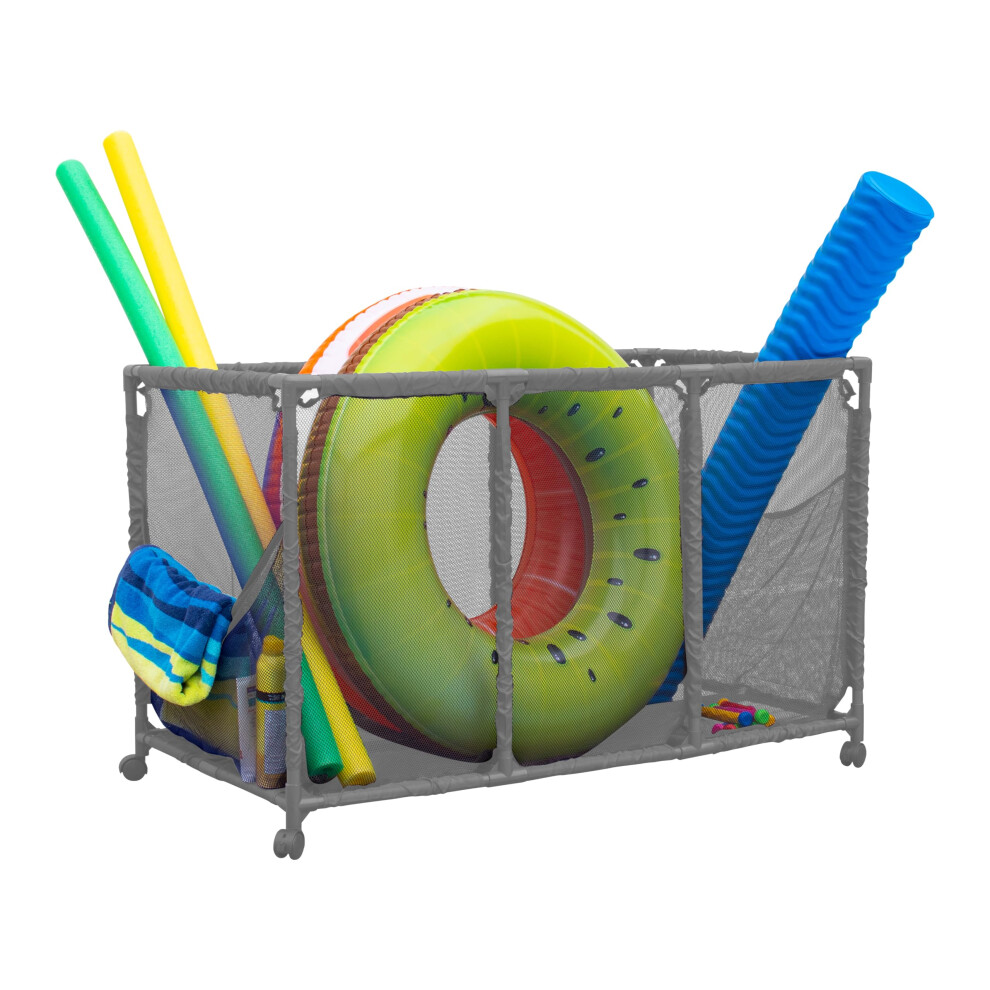 Pool Noodles Holder Toys Balls and Floats Equipment Mesh Rolling Storage Organizer Bin Kids Height Large (25"""" L x 43"""" W x 28"""" H) Gray