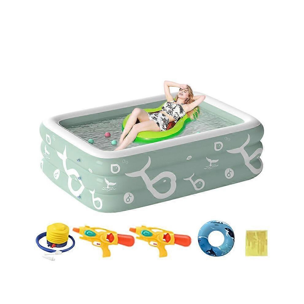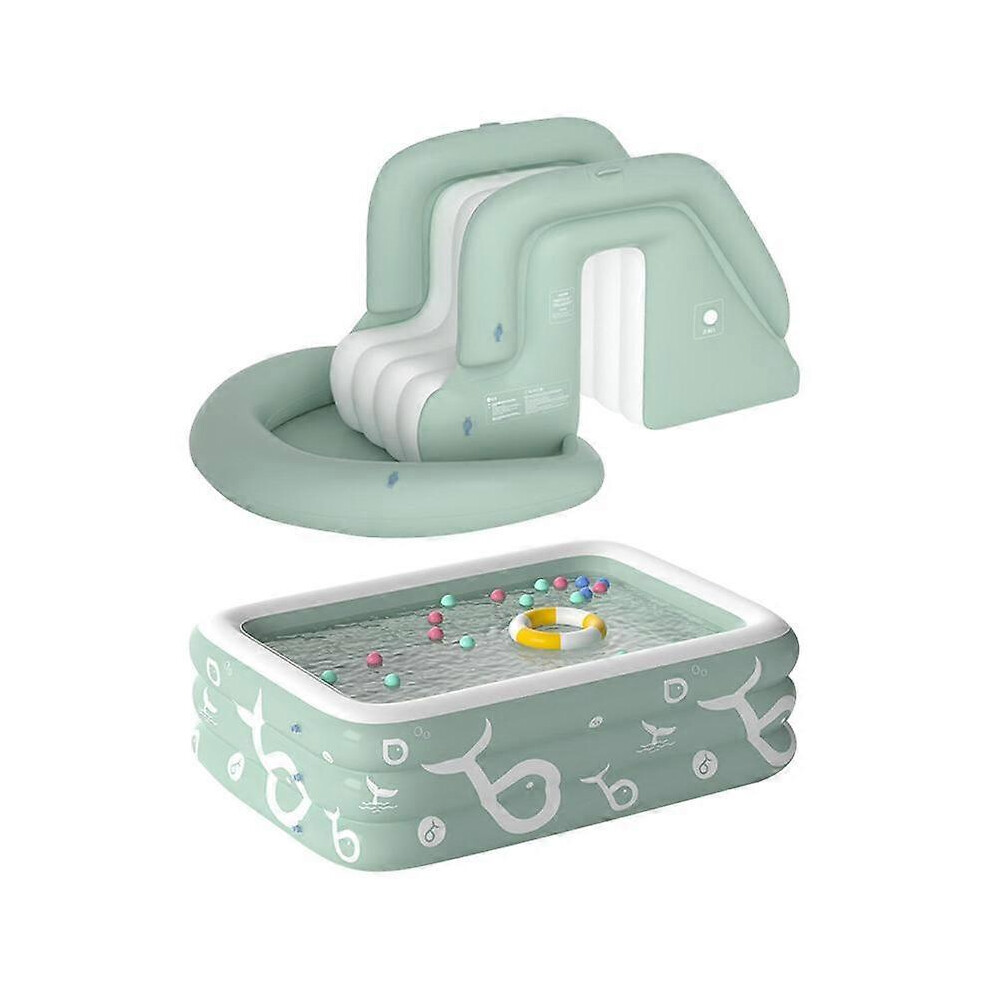 Inflatable Family Pool 2.4m with Water Slide & Wireless Pump, Green