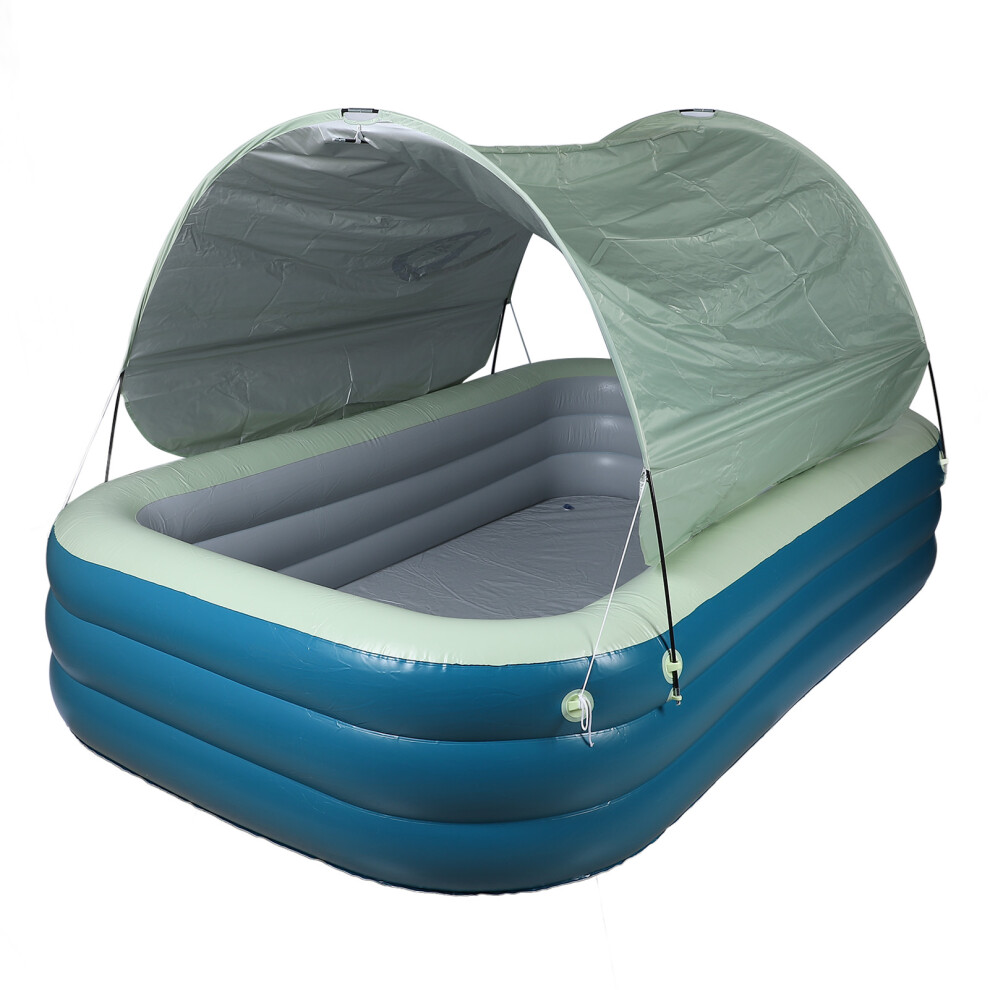 Inflatable Pool with Canopy, Portable 3m Green Family Ground Pool with Water Slide for Adults and Kids, Backyard Outdoor Use