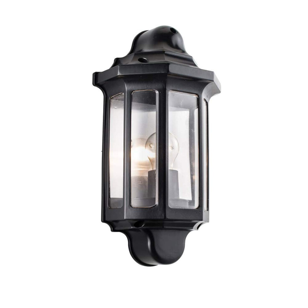 Saxby Traditional Black Outdoor Garden Porch Security PIR Motion Sensor Presence Detector Half Lantern E27 Wall Light Lamp IP44 Rated