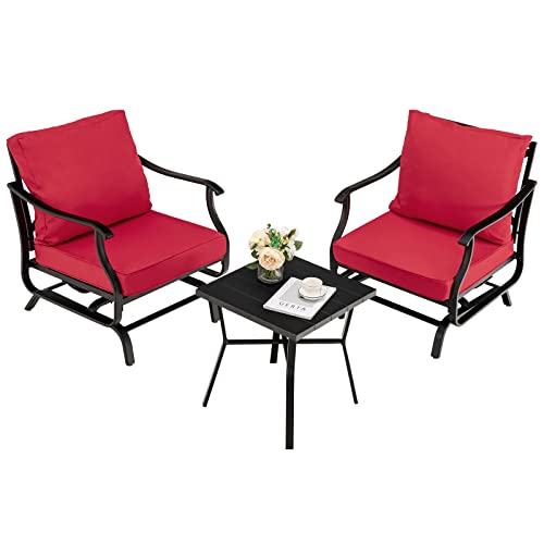 RELAX4LIFE 3PCS Rocking Bistro Set, Heavy-Duty Steel Garden Furniture Set with Coffee Table, Seat & Back Cushions, Outdoor Sectional Conversation Table Chairs Set for Patio Yard Porch Poolside