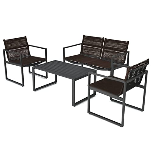 COSTWAY 4 Piece Garden Furniture Set, Sectional Patio Bistro Set with 2 Chairs, 1 Loveseat and 1 Coffee Table, Outdoor Indoor Conversation Sofa Set for Yard Balcony Poolside