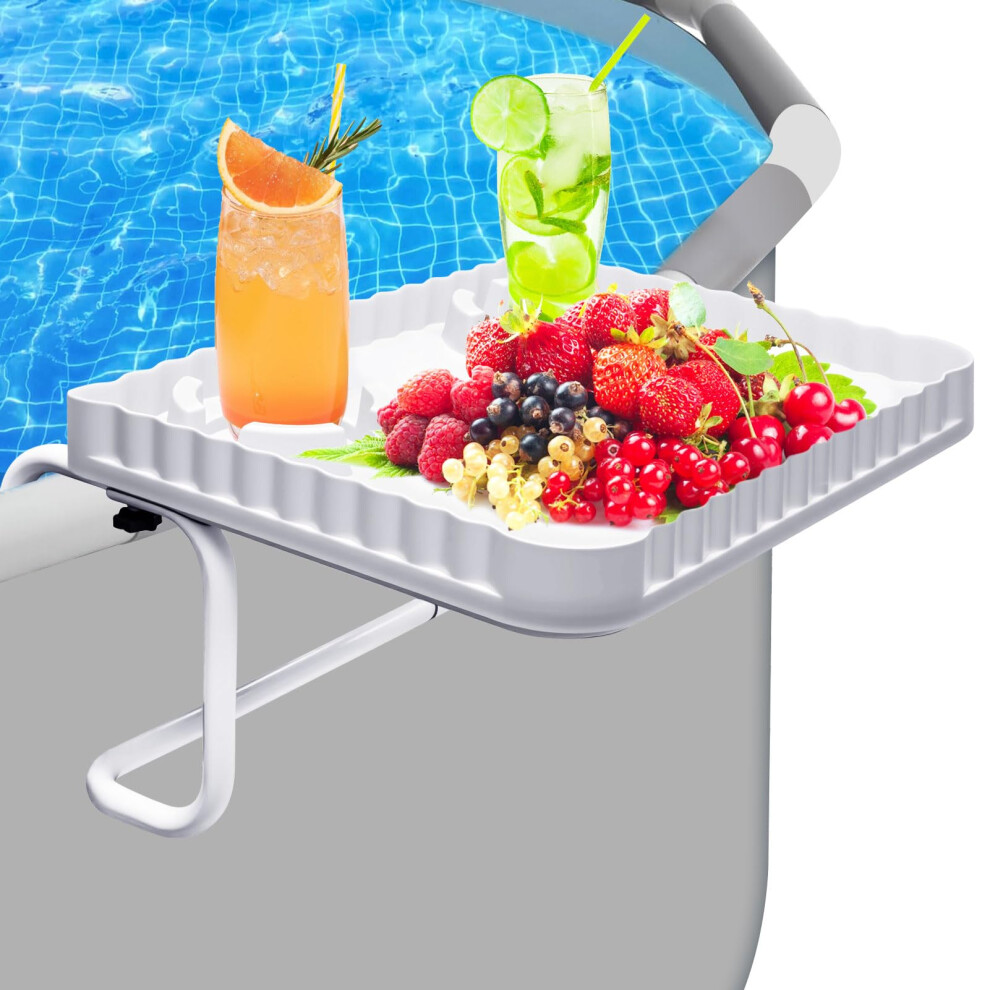 Above Ground Pool Bar, Poolside Table Serving Tray for Above-Ground Pools, Round & Oval Pool Accessories Swim Up Bar Fit for Most Frame Pools (White)