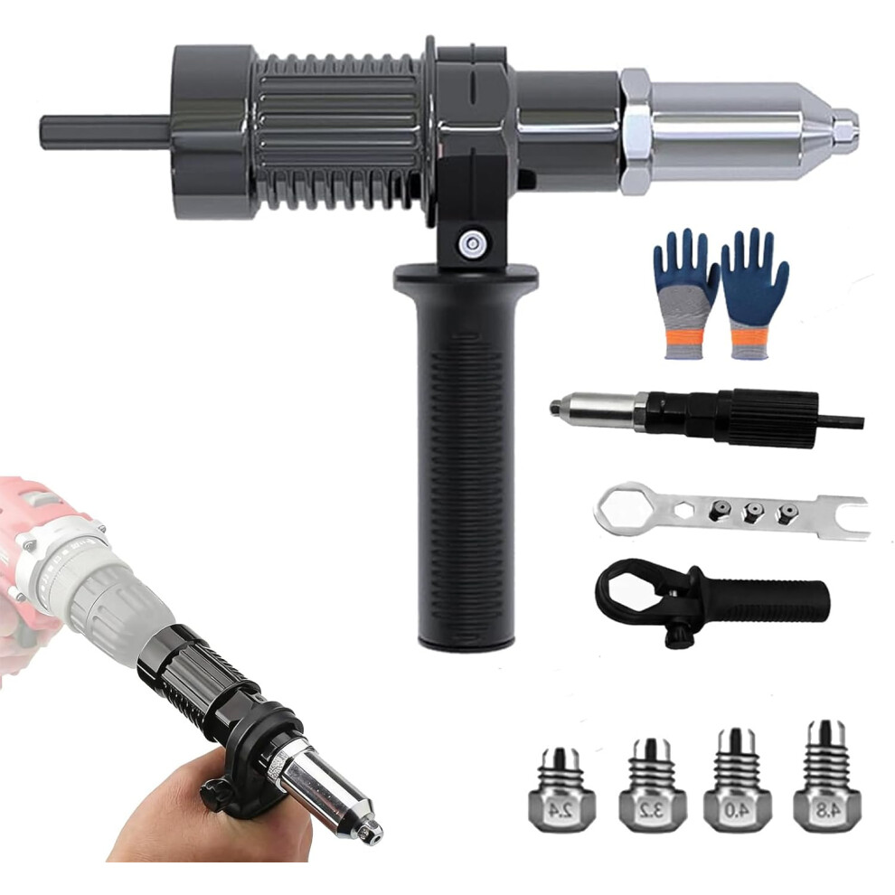 Professional Electric Rivet Gun Adapter for Drill Pop Rivet Kit Cordless Tool 4 Rivet Heads