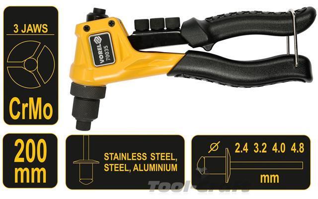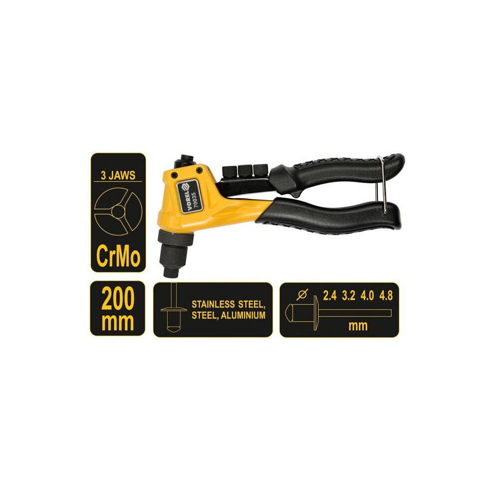 VOREL 70035, compact short hand riveter pop rivet gun 200 mm, 2.4 - 4.8 mm