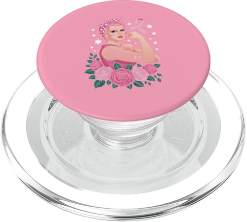 Breast Cancer Survivor Pink Ribbon Rosie Riveter PopSockets PopGrip for MagSafe