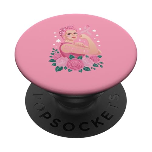 Breast Cancer Survivor Pink Ribbon Rosie Riveter PopSockets Adhesive PopGrip
