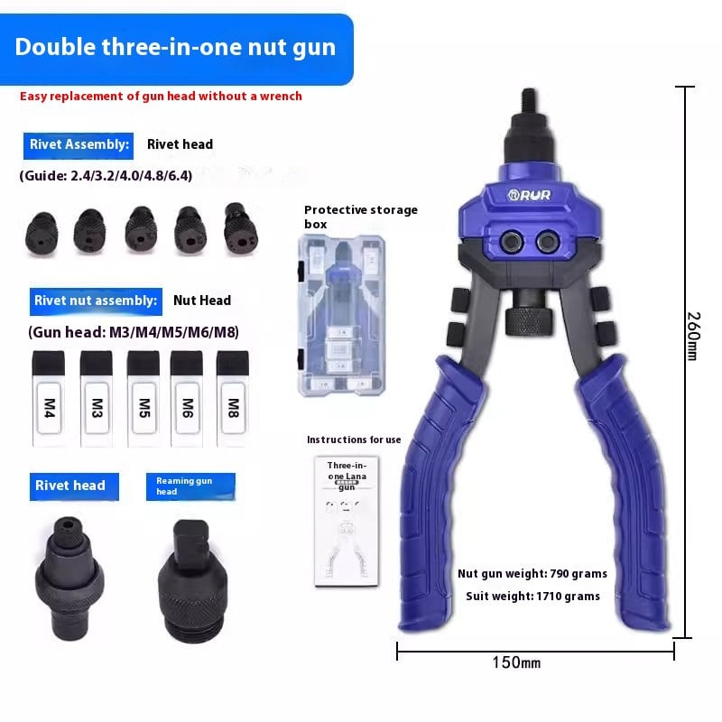 Heavy Duty Rivet Gun Tool – Hand Riveter Kit for Metal, Plastic, and Automotive Repairs | Manual Pop Rivet Gun with Multiple Nozzle Sizes | Riveting Tool for DIY, Sheet Metal, Workshop & Garage Use
