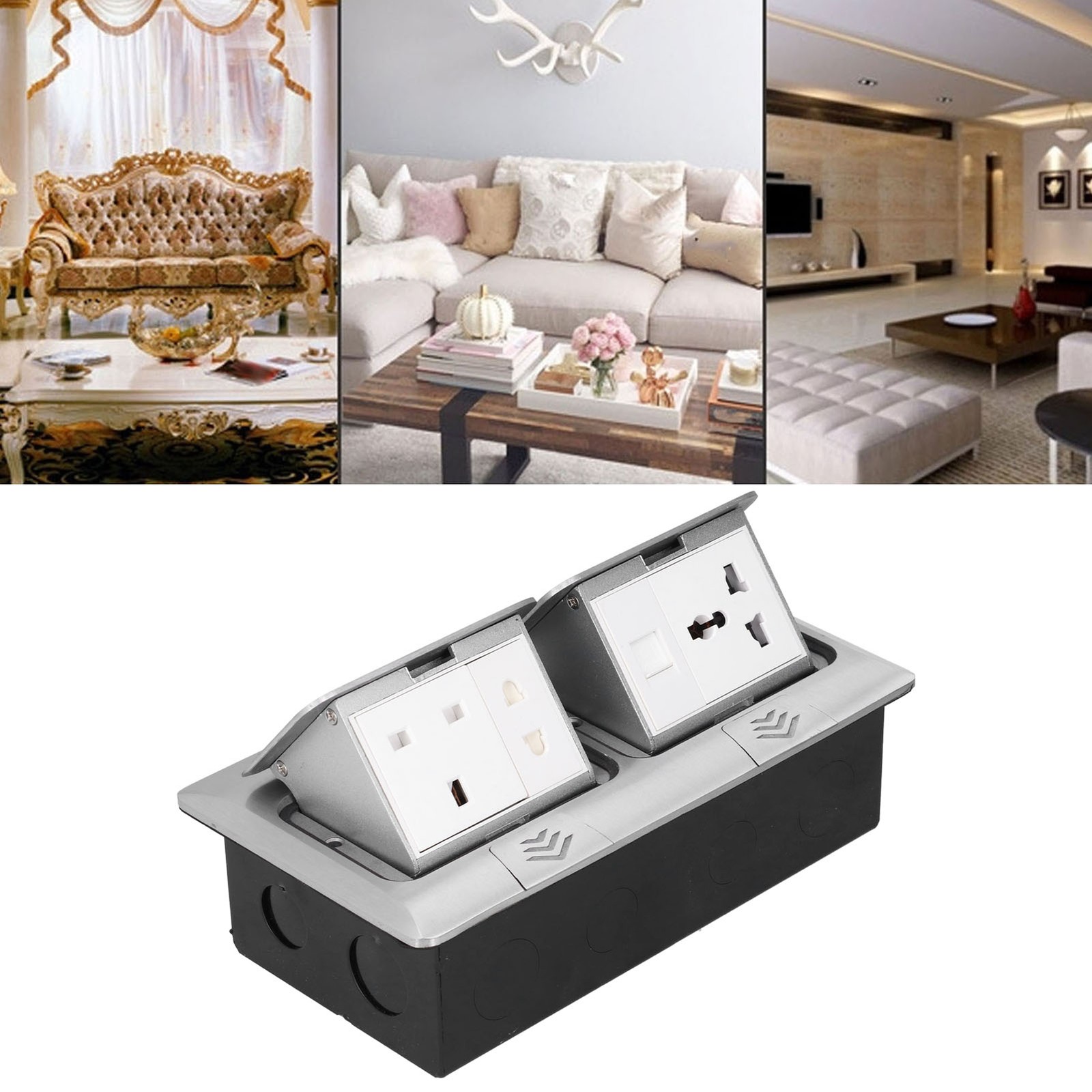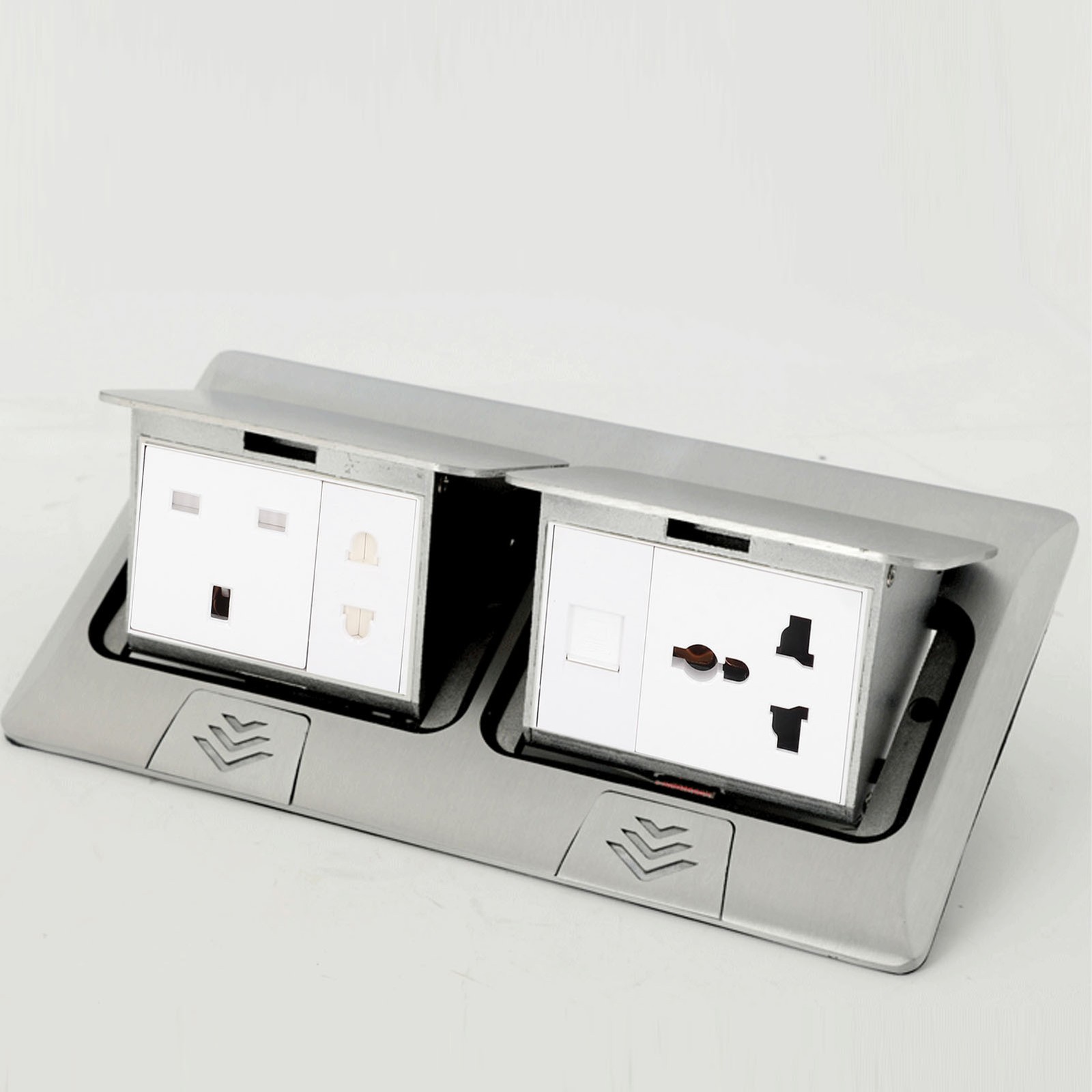 Floor Pop Up Outlet Socket Multifunction Silver Aluminum Alloy UK NEW