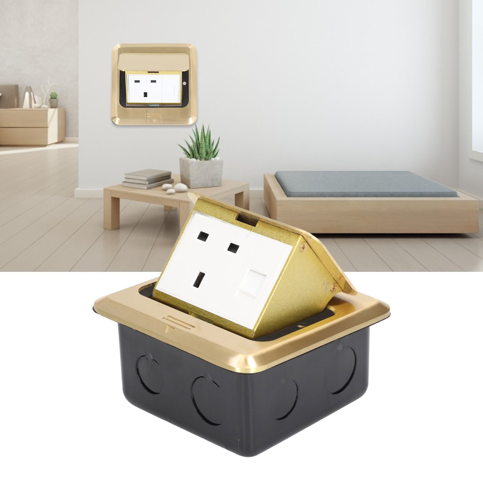 Pop Up Floor Outlet Standard 2 Position Desktop Receptacle Socket Brass Gold UK