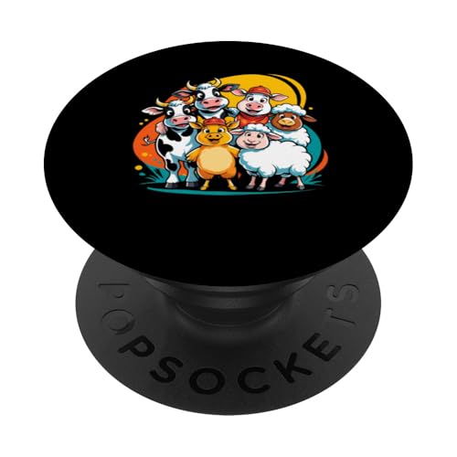 Cartoon Farm Animals Group with Cows Pig and Sheep PopSockets Adhesive PopGrip
