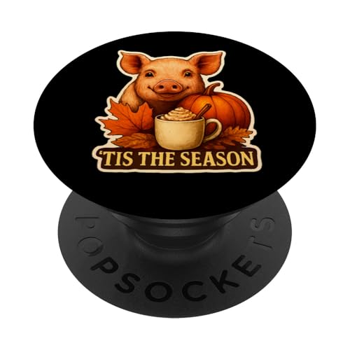 Tis The Season Pig Fall Autumn Pumpkin Leaves Farmer Rancher PopSockets Adhesive PopGrip